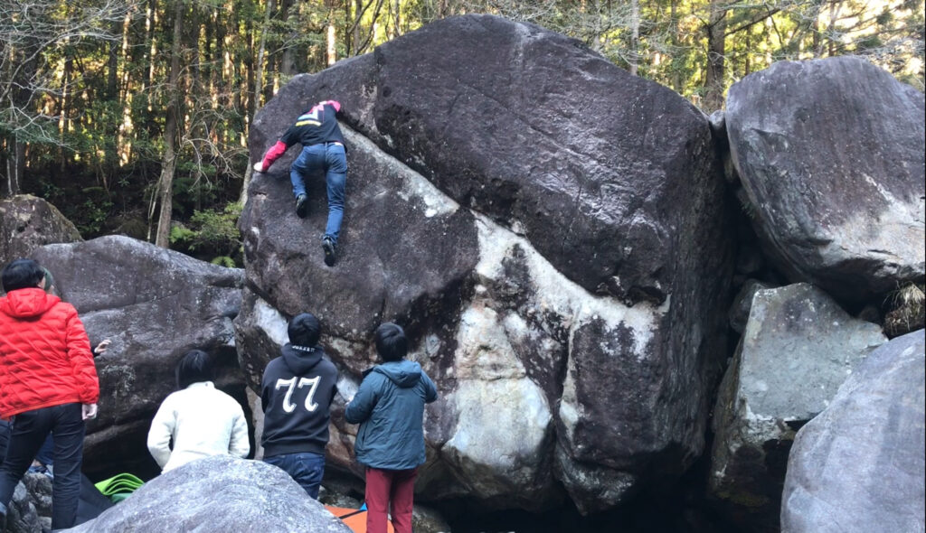 岩場には独自のローカルルールやマナーがあって、個人で適当に岩を見つけて登れるわけではありません。「トポ」と呼ばれる、岩の場所や課題のルートを示す地図に従って登る必要があります。そのため、岩場に行くには、スタッフやジムでつながった経験者に連れて行ってもらうのが基本です。