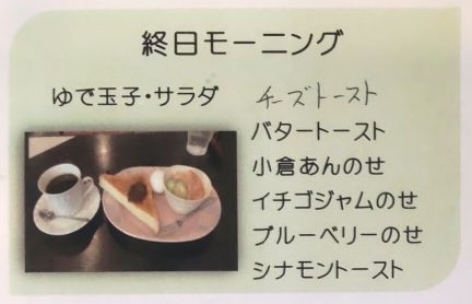 喫茶ヒーローでは、ドリンク代のみでモーニングを終日実施している。選べるトーストは種類豊富な、