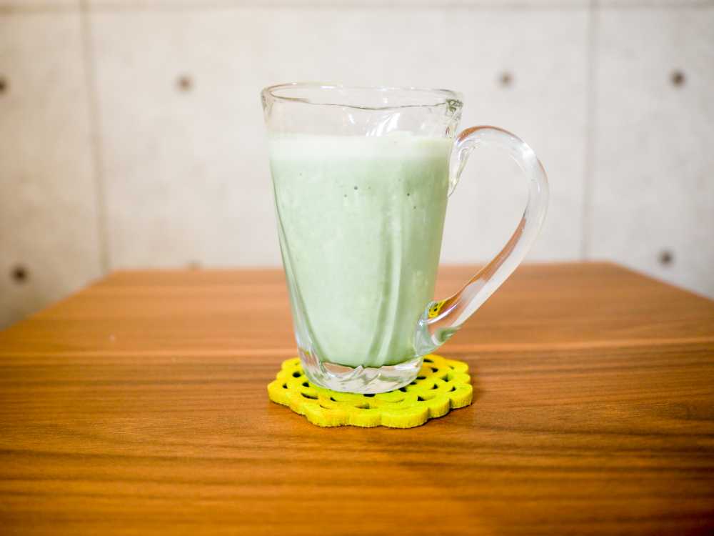看板メニューのスムージーは、こだわりのブレンド。ブレンド内容は店内掲示板でチェック。