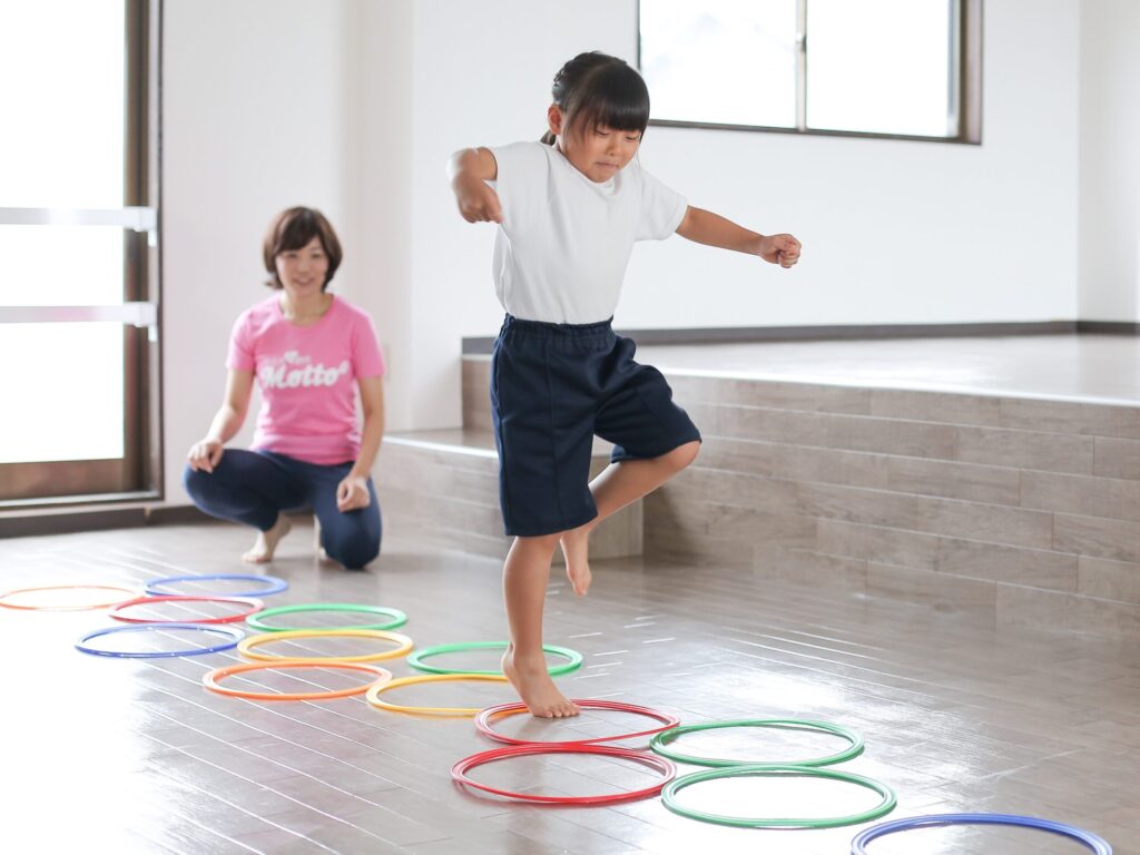 穂積駅南口から徒歩1分。明るく開放的なスタジオを構える「Mottoスポーツ塾」は、子どもたちの笑い声が似合う場所だ。壁一面のガラスや整えられたトレーニング道具からは、身体の使い方を追求する現場の熱が伝わってくる。