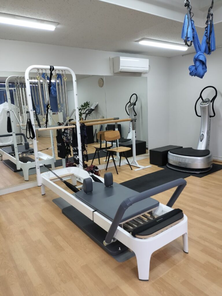マシンやマットを使うトレーニングがあり、筋肉を付けるというよりも、体のバランスや柔軟性を整えるためのトレーニングです。